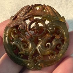 DRAGON PHOENIX PENDANT HETIAN NEPHRITE JADE Double Sided Carving $26Warren, OR