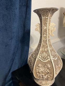 Ornate Vintage Asian-Inspired Decorative Vase – Carved Resin & Brass, Floral & Dragon Motif, 17”$40Glendale, AZ