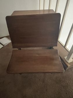 This is an antique wooden school desk with a cast iron base. $20Glendale, AZ