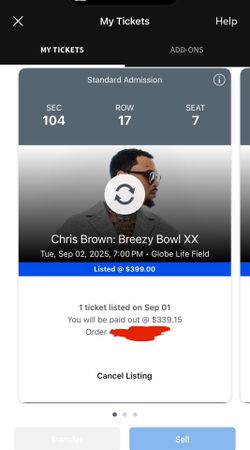 Chris Brown Tickets 9/2/25$350Arlington, TX