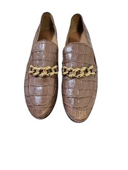 AEROSOLES TAN CROCODILE PATTERN LOAFERS WITH GOLD ACCENT$25Riverdale, MD