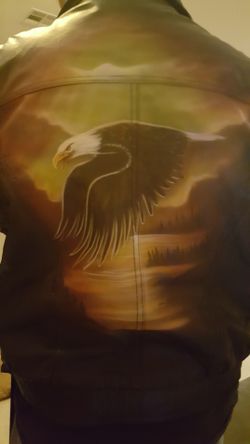 Very nice city streets leather coat with Custom air brushed eagle very nice coat XL$200Sun City, AZ