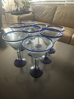Hand Blown Blue Rim Martini Glasses $30Costa Mesa, CA