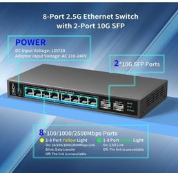 10 Port 2.5Gb Unmanaged Ethernet Switch with 8* 2.5G Base-T Ports,$80Logan, OH