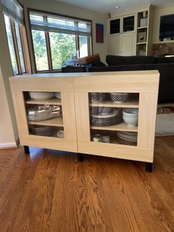 Moving sale - (beautiful and like new) White oak console / cabinet with glass doors$120Bellevue, WA