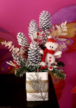 Christmas Snowman Floral Arrangement With Pinecones$25Houston, TX