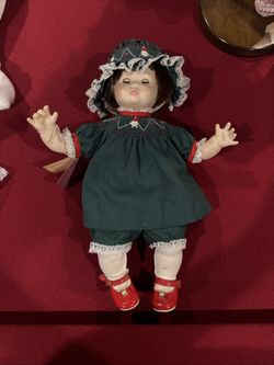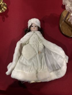 The House of Lloyd 15" Winter Dress Coat Hat Fur Trim Brunette Porcelain Doll is a beautifully crafted doll with a white fur coat$25Trout Valley, IL