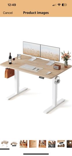 FEZIBO Standing Desk, 48 × 24 Inches Electric Height Adjustable, Sit and Stand Up, Computer Office Desk with Splice Board, White Frame/Maple TOP $100Allen, TX