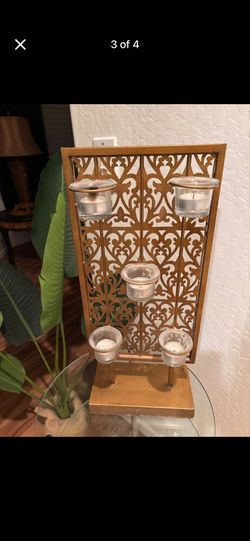 Tall, Golden Tone, Metal, And Glass Candle Holder$35Gilbert, AZ
