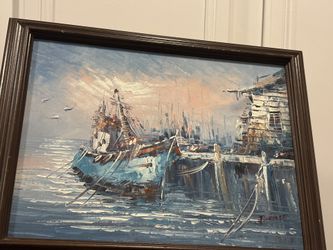 Original And Signed Oil Painting Of The Boats And Ships Blue Tonest$125Gilbert, AZ
