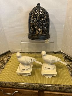 Cast Iron Scrollwork Candle Lantern & Birds/Pigeons/Doves, Door Stop Figure Garden Statue-$65 CASH$65Shavano Park, TX