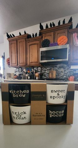ℌ𝔞𝔩𝔩𝔬𝔴𝔢𝔢𝔫 Set of 4 Ramekins Baking Dishes 🔮 🐈⬛ 🌙 Juego de 4 Platos Hornear