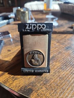 vintage 1976 Zippo slim lighter with a gold plated horizontal bark design.$18Groom Creek, AZ