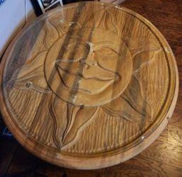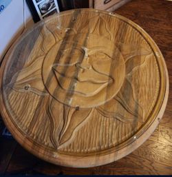 Custom 40" Wooden Hand Carved Round Coffee Table/ Base/ Glass ( PRICE LOWERED)$150Moreno Valley, CA