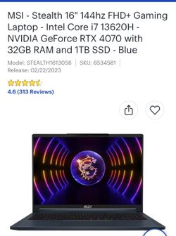 MSI Stealth 16" 144hz FHD+ Gaming Laptop i7-13620H RTX 4070 32GB 1TB$1,500Tacoma, WA