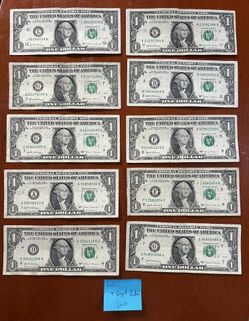Dollar Bill Set Of 10 Triple Special Serial Numbers 000 To 999$25Kearny, NJ