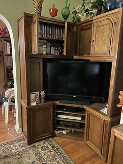 Hand Made Solid Oak Corner TV Stand Wall Unit$60Harrison, NJ