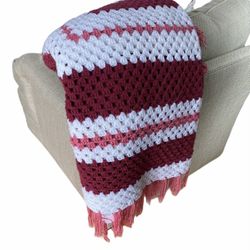 Vintage Granny Square Afghan Throw Blanket Red White Pink Holiday Large$50Palatine, IL