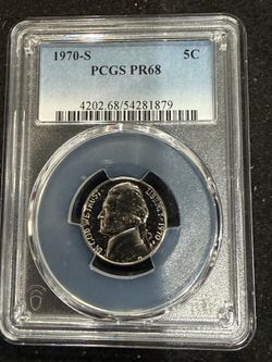 1970 S Gem Proof Jefferson Nickel Graded By PCGS At PR68 5-5$12Port Griffith, PA