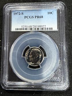 1972 S Gem Proof Roosevelt Dime Graded By PCGS At PR68 5-8$12Port Griffith, PA