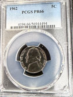 1962 P Gem Proof Jefferson Nickel Graded By PCGS At PR66 Nice Coin 7-1$16Port Griffith, PA