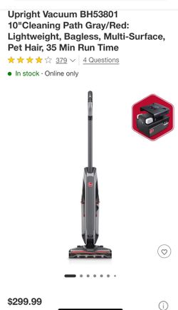 Upright Vacuum BH53801 10"Cleaning Path Gray/Red: Lightweight, Bagless, Multi-Surface, Pet Hair, 35 Min Run Time$150Huntington Park, CA