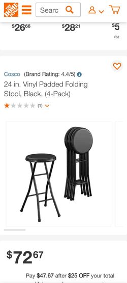 24 in. Vinyl Padded Folding Stool, Black, (4-Pack)