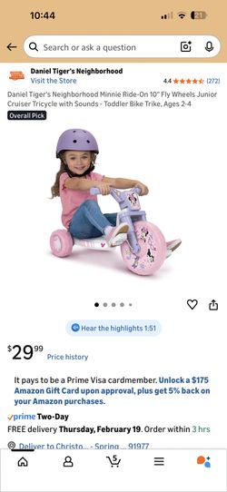 Minnie Ride-On 10" Fly Wheels Junior Cruiser Tricycle with Sounds - Toddler Bike Trike, Ages 2-4$15Spring Valley, CA