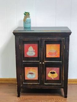 25" Classic Little Coffee Bar Rustic Shabby Cappuccino Themed Cabinet Side Table$80Oklahoma City, OK
