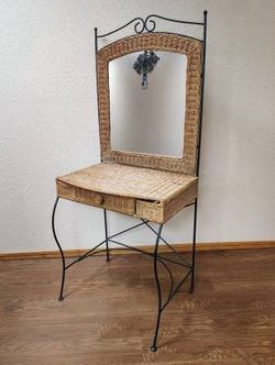 1960s/70s Iron Wicker Vanity Makeup Table + Mirror 29×27$285Oklahoma City, OK