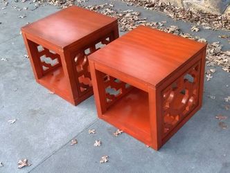 Pair 18 in Cube Chippendale Chinoiserie Pierced Vintage Red End Tables Heavy$605Oklahoma City, OK