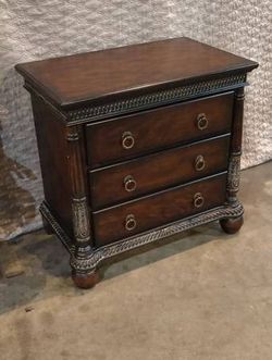 Powell Burled Wood Silver Highlights Oversized Nightstand 3 Drawer Ornate Ring Pulls 30×30$500Oklahoma City, OK