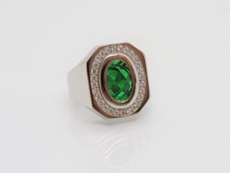 Vintage Sterling Silver Faceted Emerald & White Topaz Men's Ring Size 9 $165Antioch, CA