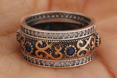 Handmade Turkish Authentic Round Cut Blue Sapphire Topaz 925 Sterling Silver Ring