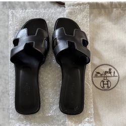 Hermes Oran black leather Sandals flats Womens size 37 $475Buena Park, CA
