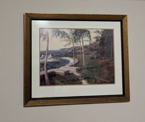 Framed water, boats ,and palm tree picture$25Guyton, GA
