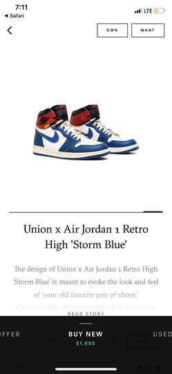 Union X air Jordan 1 storm blue Size 8.5$500Artesia, CA