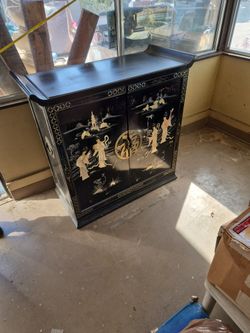 vintage Chinese black lacquer dry bar cabinet featuring $500El Cajon, CA
