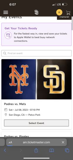 Padres Vs dodgers Sat, MAY 11$100Spring Valley, CA