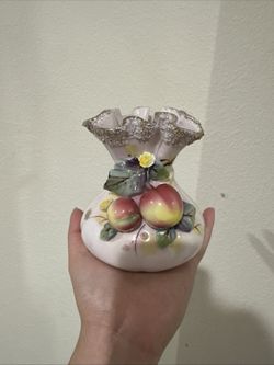 Vintage L'Amour Majolica Apples & Blossoms Pink Pinched Ruffled Top Vase Japan$20San Jose, CA