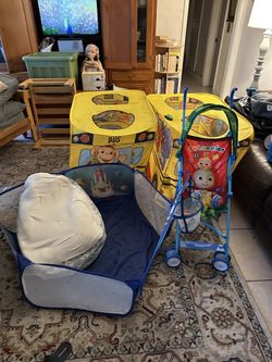 Cocomelon Bus Tents, Cocomelon Doll, Cocomelon Stroller And Beanbag Ball Tent$25Fort Lauderdale, FL