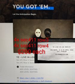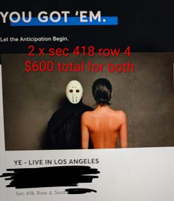 2 x Ye live in Los Angeles Sofi Friday 4/3/26$300Culver City, CA