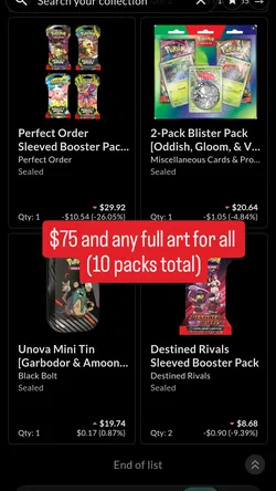 Pokemon packs perfect order, mega evolutions, phantasmal flames, black bolt, white flare, destined rivals$75Westchester, CA