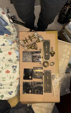 Antique Brass mortise Lock Set And Antique Crystsl Door Knobs And More Antique Door Hardware $90Seattle, WA