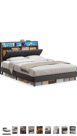 Base de cama LED tamaño Queen, cabecera de almacenamiento y estación de carga, marco de cama Queen con 2 salidas de CA, 1 puerto USB, 1 puerto tipo C,$115Tulare, CA