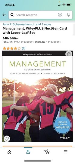 Management 4th Edition Schermerhorn Jr With Wiley Access Code $50Burbank, CA