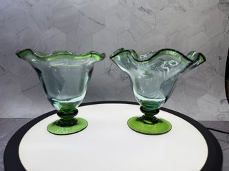 Set of (2) Gorgeous Vintage Murano Art Glass Handblown Fruit/Dessert Cups/bowls. Green Edge & Base. Excellent Condition.$159Austin, TX