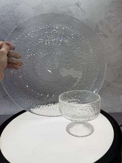 (1) Vintage Indiana Glass Crystal Ice Dessert Sherbet Pedestal Cup & (1) IITTALA Finland solaris Tapio Wirkkala 14” textured platter 1960's. Excellent$99Austin, TX