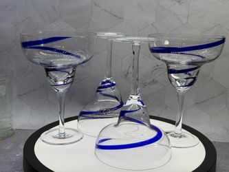 Set of (4) Pier 1 Imports Vintage Cobalt Blue Swirline hand-blown margarita glasses. Excellent condition. $49Austin, TX