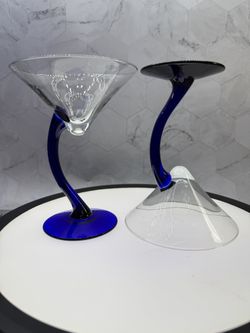 Set of (4) Beautiful Vintage Libbey Bravura Swerve Martini Cocktail Glasses Cobalt Curved Blue Stems. Great Barware! Great Condition. Four sets availa$39Austin, TX